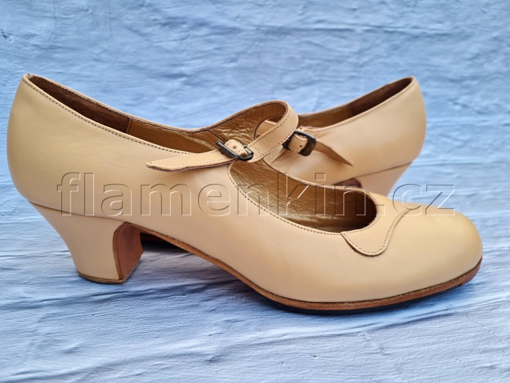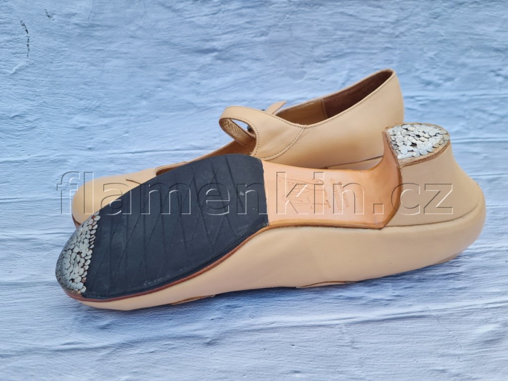 Velmi pohodlné, kvalitní, celokožené a ručně šité poloprofesionální boty na flamenco s hezkým zvukem a kulatější špičkou.