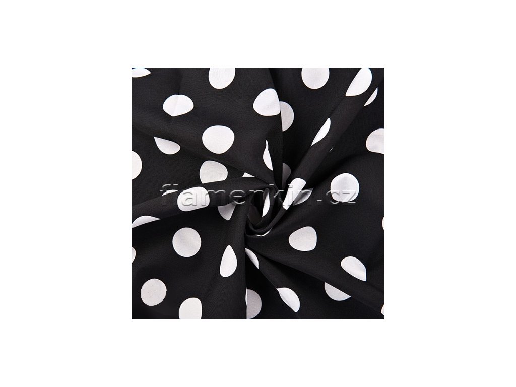 Materiál: 100% polyester, nemačkavý, nepružnýŠířka: 150 cmVelikost puntíků: 3,5 cmCena je za 1 m (100 cm x150 cm)