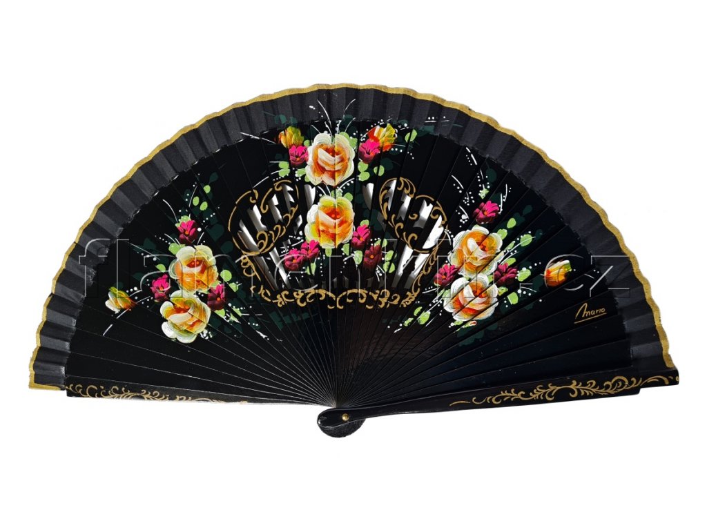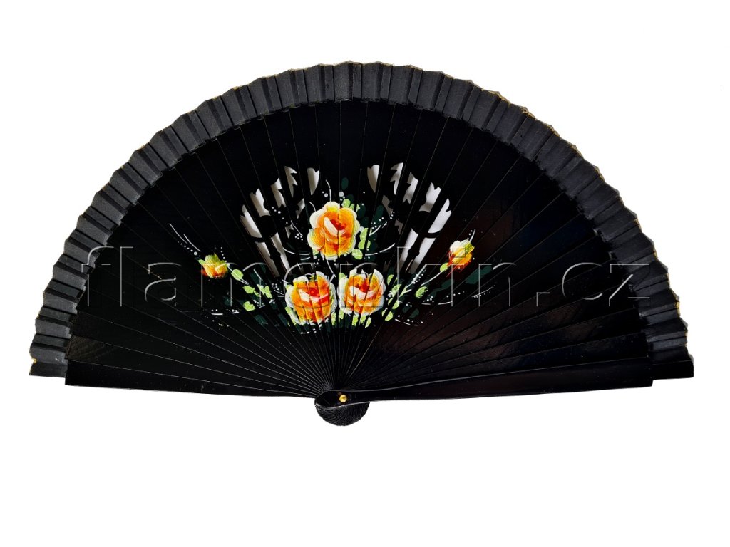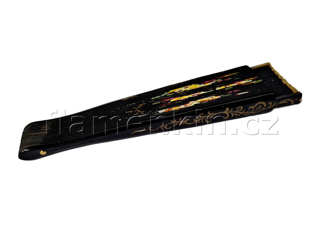 Černý dřevěný oboustranně malovaný vějíř F1145