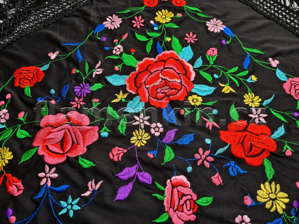 Černý trojcípý šátek s barevnou výšivkou ANF