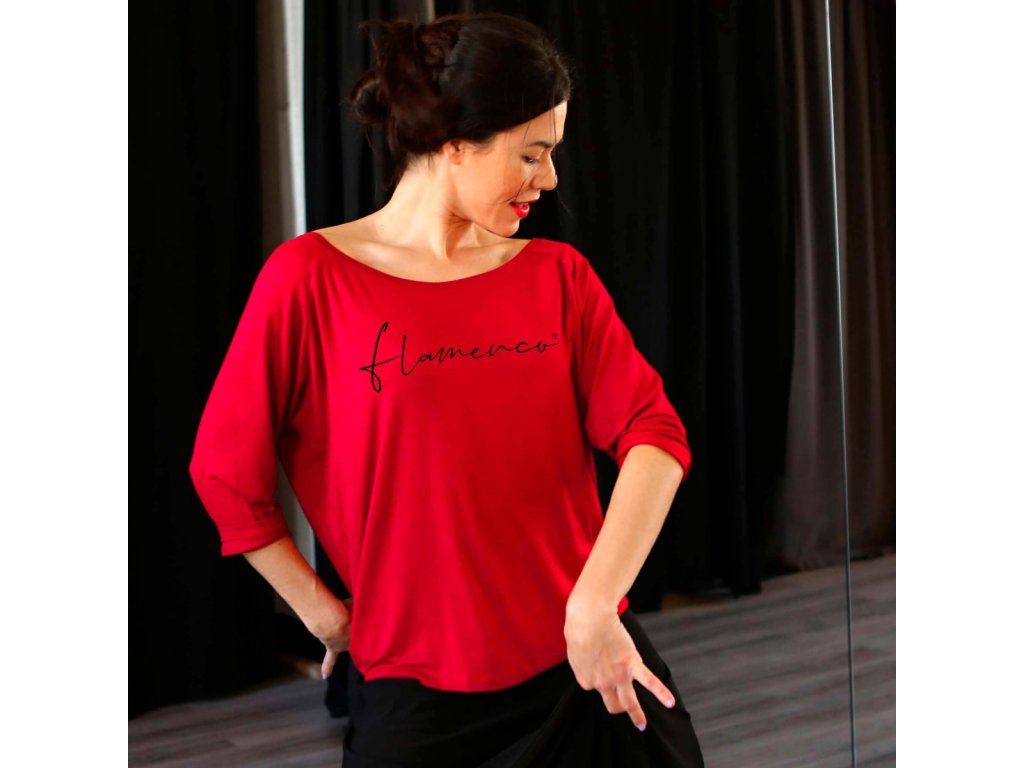Pohodlné stylové tričko značky FLAMENCOLOGY netopýřího střihu s dlouhým rukávem a kresleným motivem vhodné na tréninky i na běžné nošení.