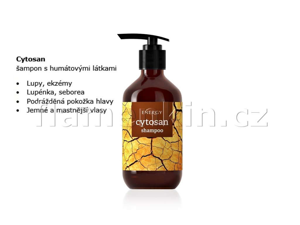 Terapeutický humátový šampon Cytosan je určený k aplikaci při kožních problémech ve vlasové pokožce, jako jsou lupy, ekzémy, lupénka nebo jiné dermatitidy. Při jeho používání dochází k hluboké očistě a detoxikaci vlasové pokožky i vlasů. Je velice vhodný u mastnějších a jemných vlasů, které dobře očistí a zpevní. Lze jej nanášet také jako sprchový gel na celý povrch těla (například u zmíněné lupénky).
