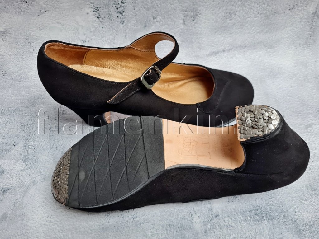 Very comfortable handmade full leather flamenco shoes with good sound quality and rounded toe.