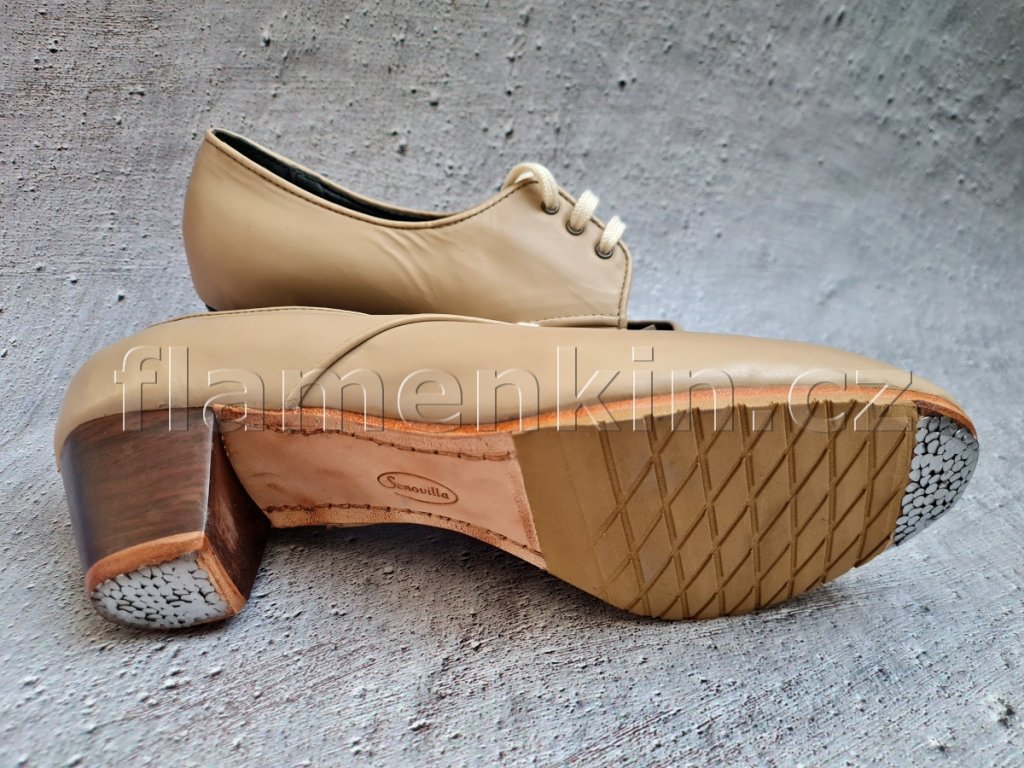 Professional hand-made flamenco dancing shoe with a rosewood heel and a lovely sound manufactured by Senovilla.