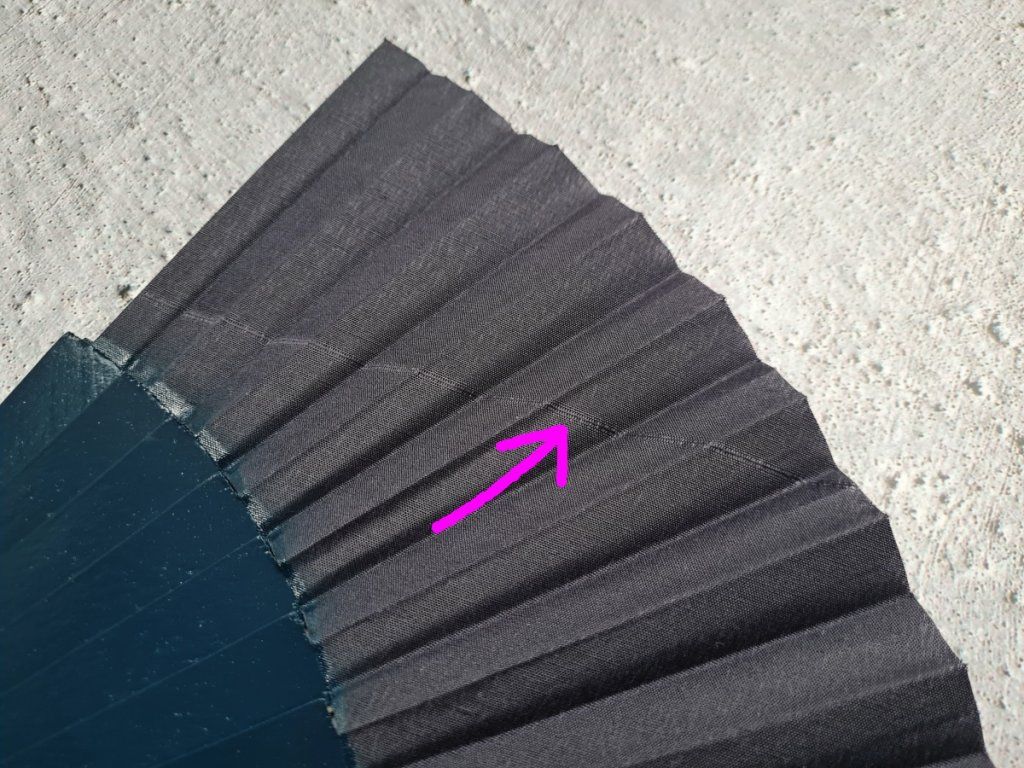 Dark Blue Medium Size Wooden Fan with small defect in the fabric