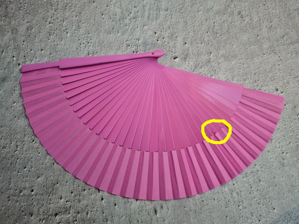 Fuchsia Small Plain Wooden Fan with small defect in the fabric