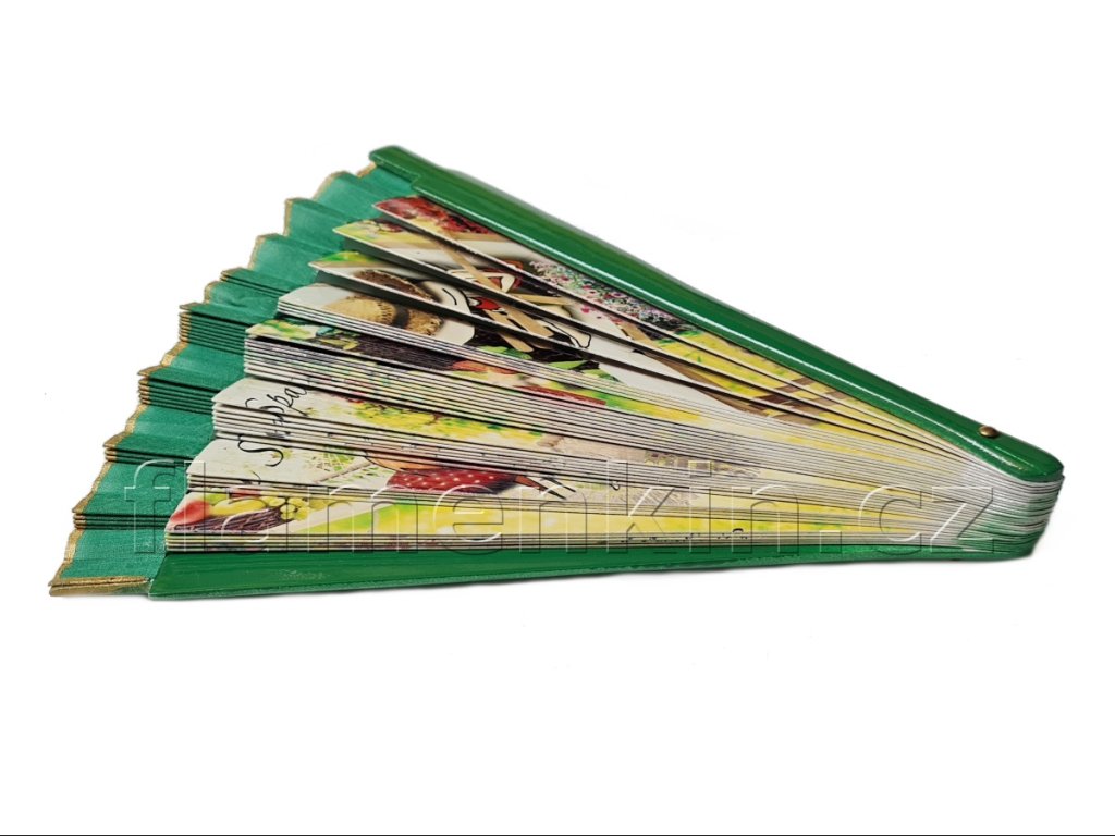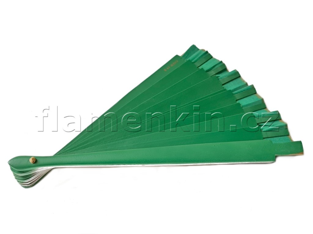 Malý hladký jednostranně malovaný skládací vějíř s krycí boční lištou o délce 23 cm.