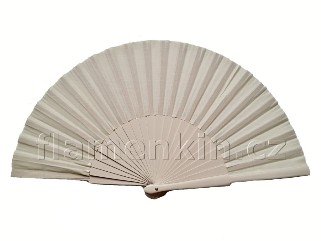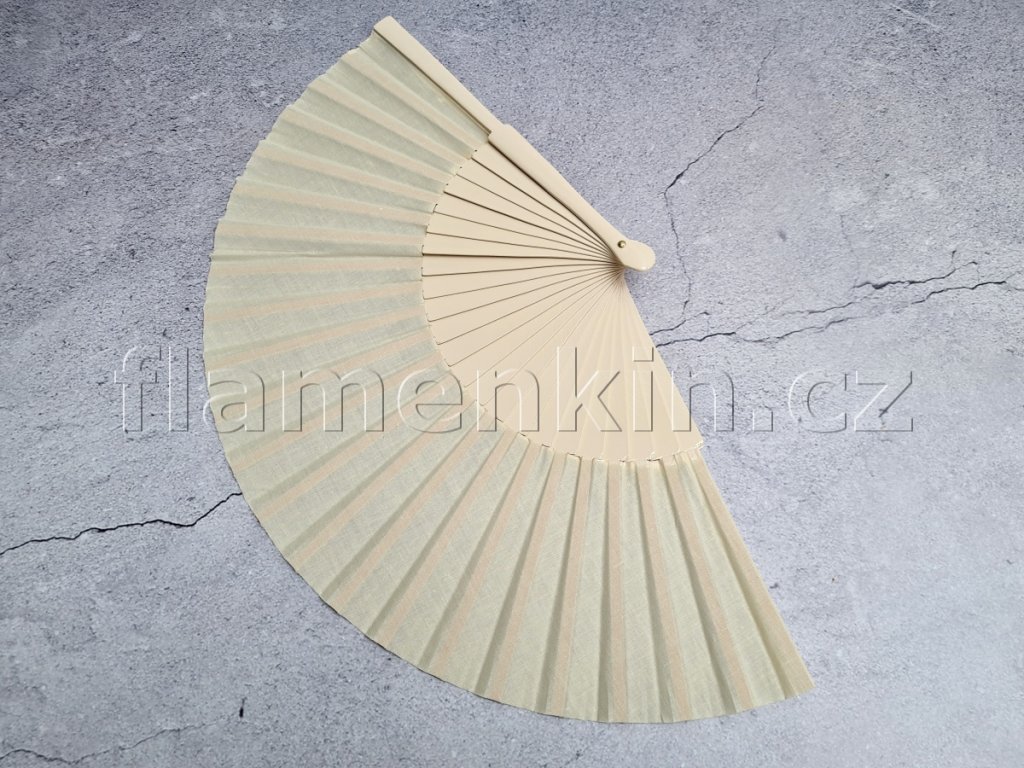 Krémový malý hladký dřevěný vějíř vhodný proti horku i jako rekvizita.