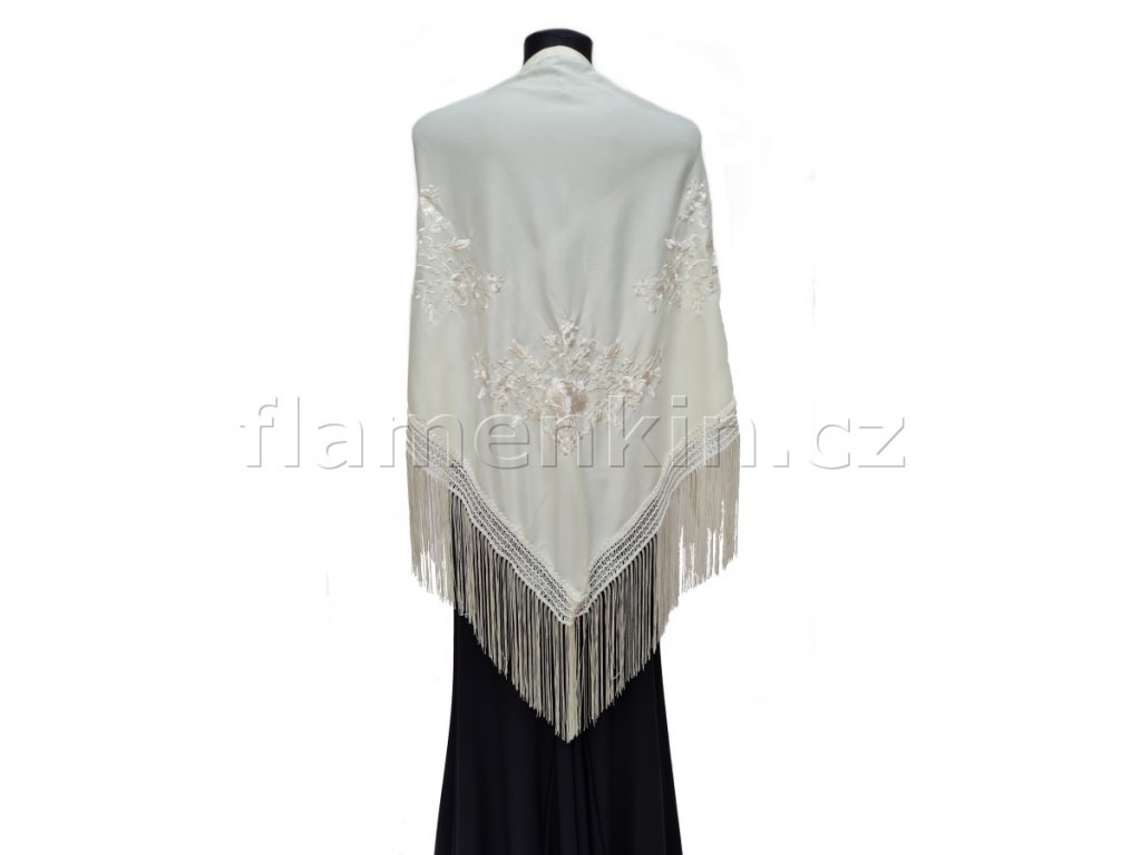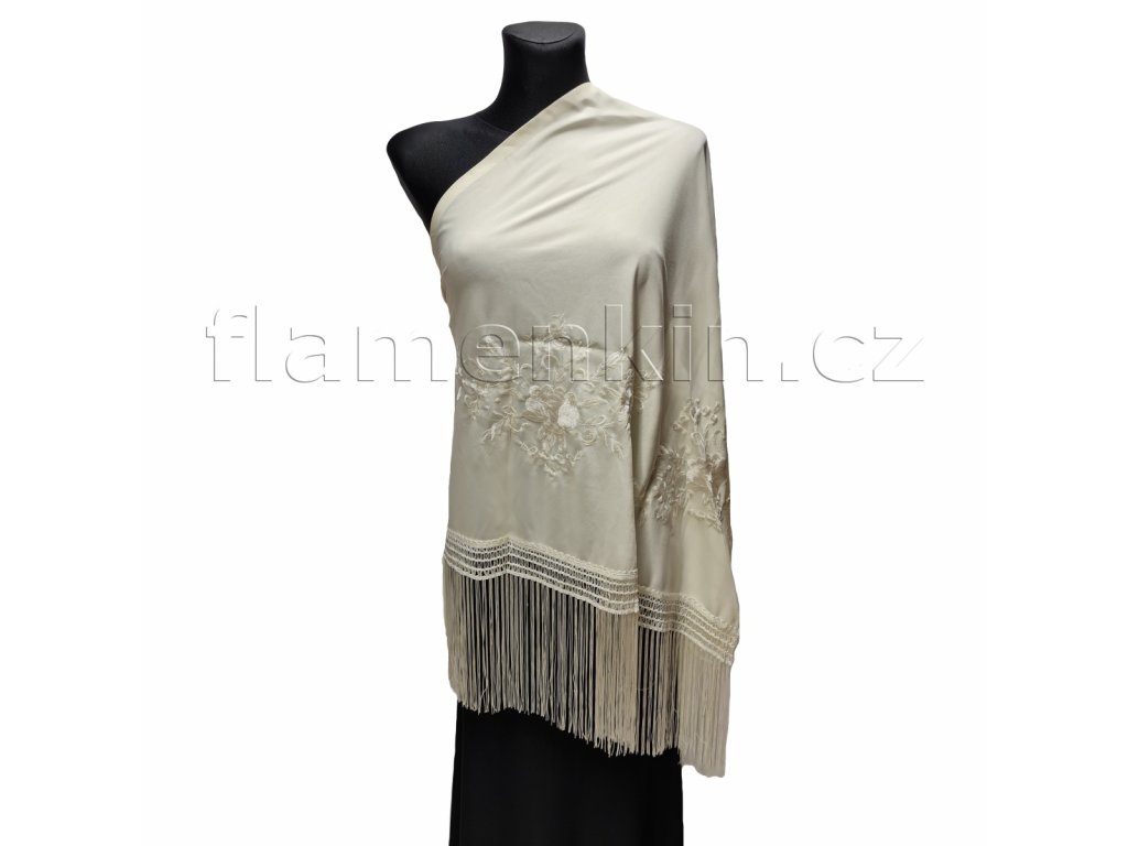 Krémový trojcípý šátek s krémovou výšivkou (model s drobnými kytičkami)