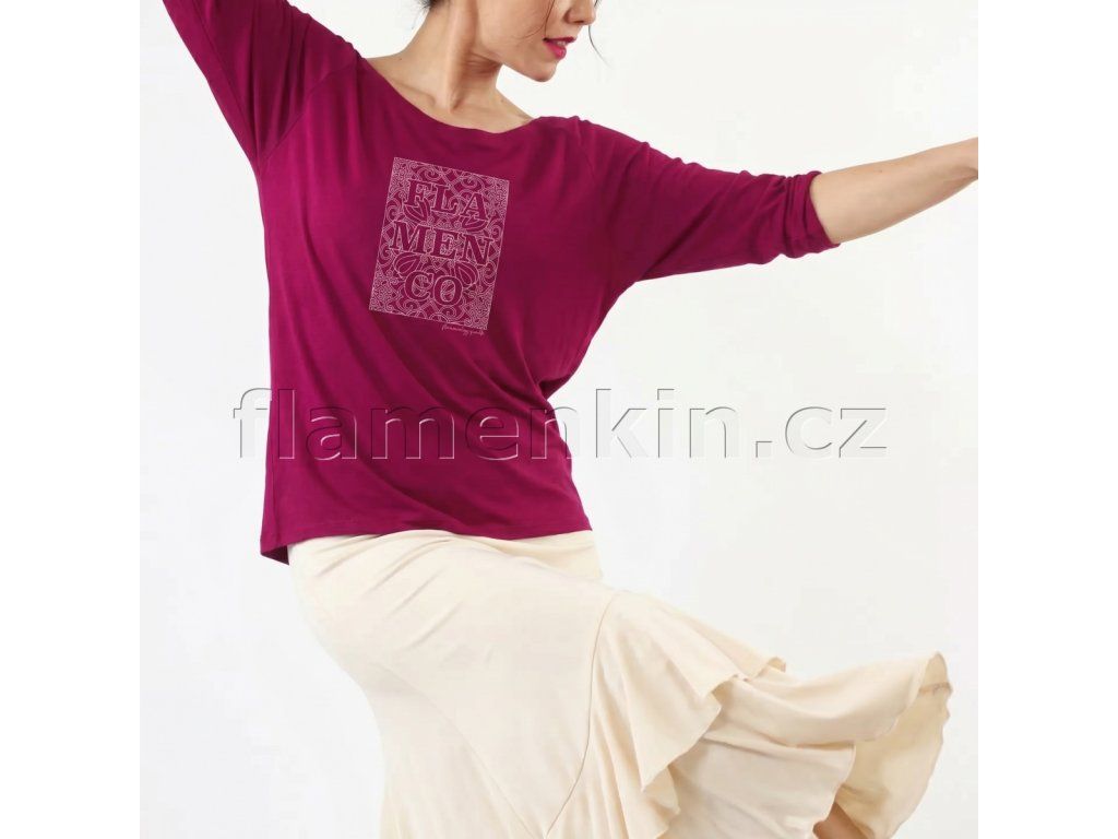 Pohodlné stylové tričko značky FLAMENCOLOGY netopýřího střihu s dlouhým rukávem a kresleným motivem vhodné na tréninky i na běžné nošení.