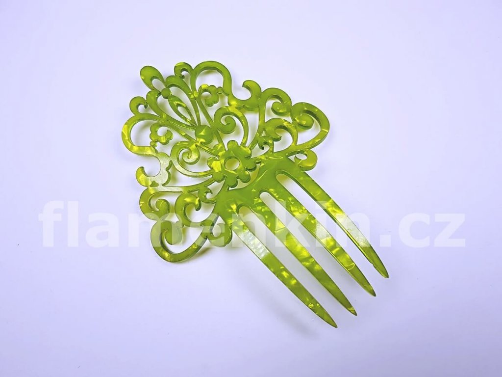 Ozdobné hřebeny do vlasů (španělsky peinetas nebo peinecillos) neodmyslitelně patří k doplňkům flamenkového kostýmu. Dotvářejí flamenkový účes a můžete jich použít i několik najednou - různých tvarů a v jedné nebo v několika různých barvách.