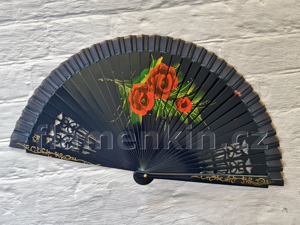 Malý skládací vějíř s krycí boční lištou o délce 23 cm.